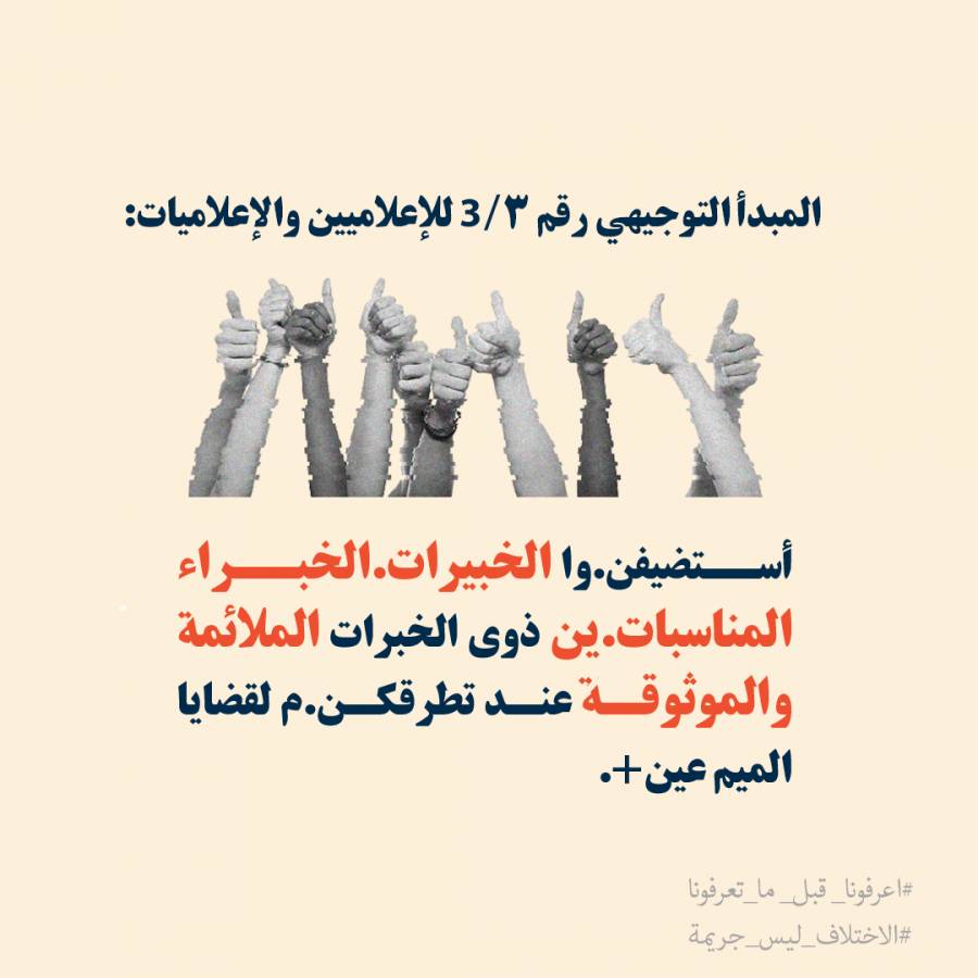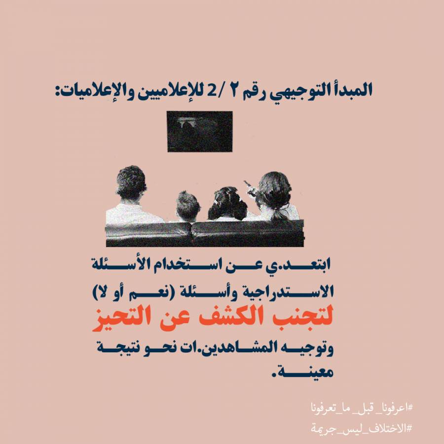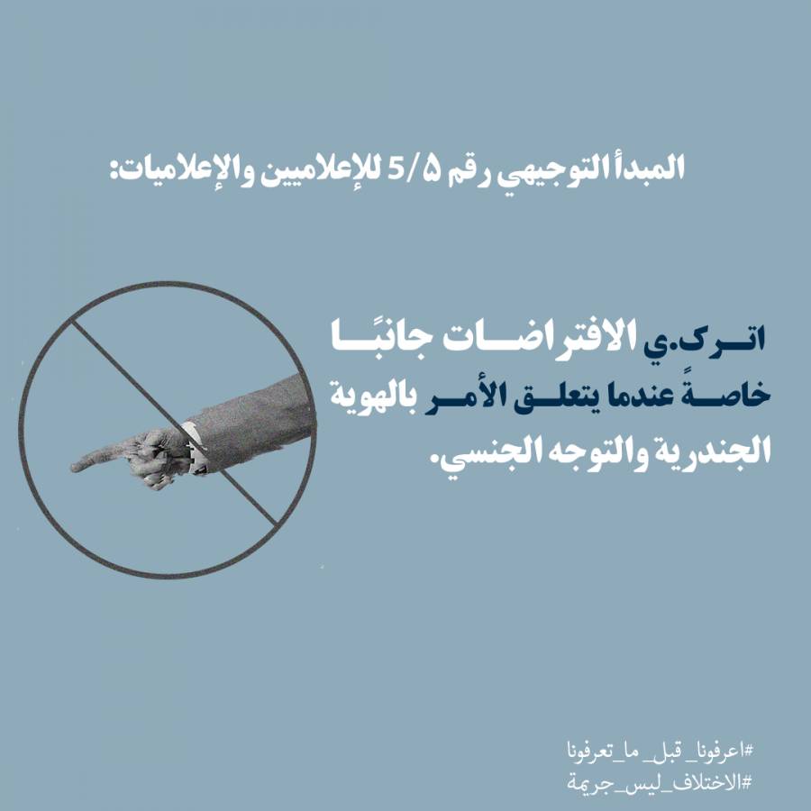 وفي الختام، يشدد فريق الحملة، على ضرورة تتبع مصادر تمويل هذه البرامج التلفزيونية أو المؤسسات الإعلامية التي تنتجها، وأهمية المضي قدماً في تقديم دليل (guideline) عبر رسالة مفتوحة للقنوات والجهات الممولة، وهو الأمر الذي تقوم به حملة “اعرفونا قبل ما تعرفونا”، إذ نشرت دليلاً يضم 10 نقاط رئيسية، تمثل تنبيهات أساسية للممارسات الإعلامية الضارة الشائعة بحق أفراد مجتمع الميم-عين، مع اقتراح ممارسات بديلة.