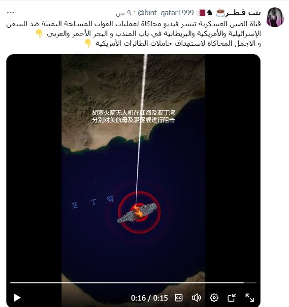 Read MoreYNP : فجرت الصين، الثلاثاء، جدلا واسعا عقب نشرها مقطع فيديو لأول مرة حول الهجمات اليمنية الأخيرة على حاملة الطائرات…