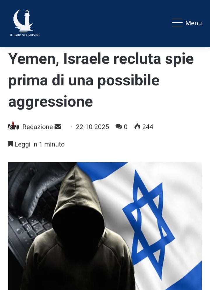 أفادت مجلة إيطالية أن جهاز الاستخبارات الإسرائيلي ، يُكثّف جهوده لتجنيد عملاء في اليمن لجمع معلومات استخباراتية تحسبًا لتصعيد عسكري محتمل ضد البلاد.